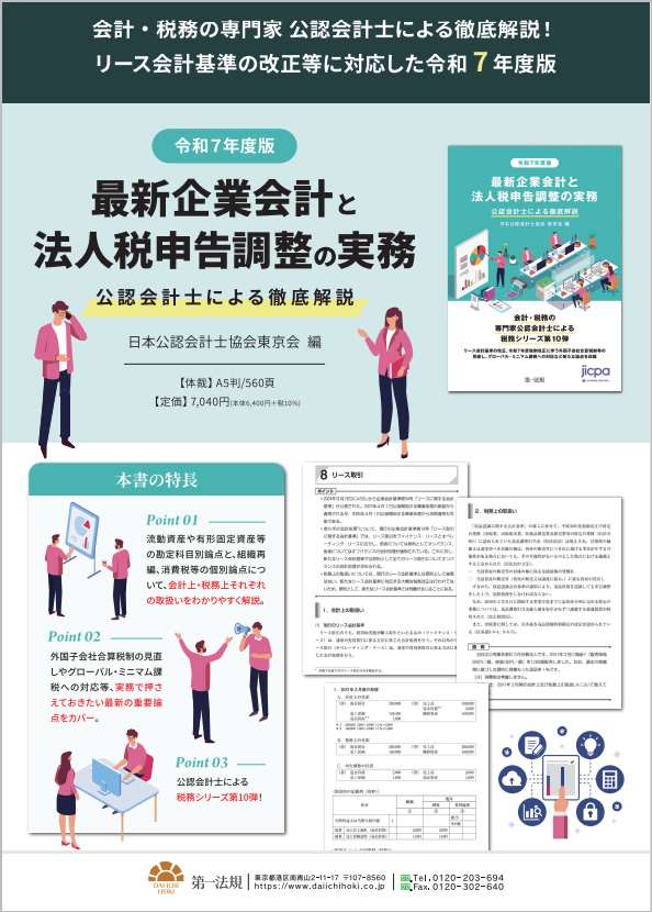 令和7年度版 最新企業会計と法人税申告調整の実務 公認会計士による徹底解説 出版社:第一法規 株式会社 登録情報 著者: 日本公認会計士協会東京会 編 出版社: 第一法規 株式会社 ISBN: 978-4-474-09804-6 発刊日: 2025-10-03 定価 ¥7,040 (税込) 1 2 3 4 5 6 7 8 9 10 11 12 13 14 15 16 17 18 19 20 21 22 23 24 25 26 27 28 29 30 31 32 33 34 35 36 37 38 39 40 42 43 44 45 46 47 48 49 50 51 52 53 54 55 56 57 58 59 60 61 62 63 64 65 66 67 68 69 70 カートに入れる 商品の紹介 法人税の申告調整の実務を、勘定科目別の論点(流動資産、有形固定資産、負債、純資産、損益等)と個別論点(組織再編、消費税、外貨建取引等)に分け、それぞれの論点につき、会計上の取扱い、税務上の取扱いを詳細に解説。令和7年度税制改正、リース会計基準に対応。 商品のキャンセル及び返品について ご注文が確定してからのキャンセル及び商品到着後の返品は原則不可とさせていただいております。 クーポンの利用忘れや注文の間違いには十分ご注意ください。 落丁・破損等があった場合については、各書籍の出版社までご連絡ください。 お支払い商品の・発送方法について 購入された書籍は、出版社ごとに請求書を同封して発送いたします。 異なる出版社の書籍を複数同時に購入された場合は、それぞれの出版社から別々の荷物で発送されます。 代金のお支払いは出版社ごとの請求書にてそれぞれお支払いください。
