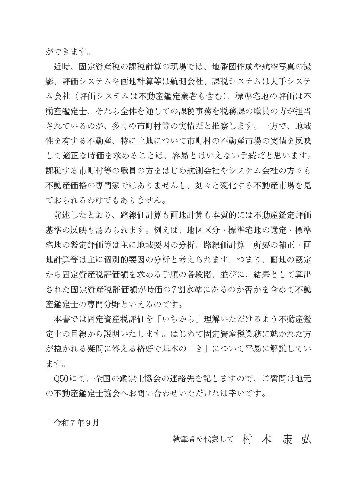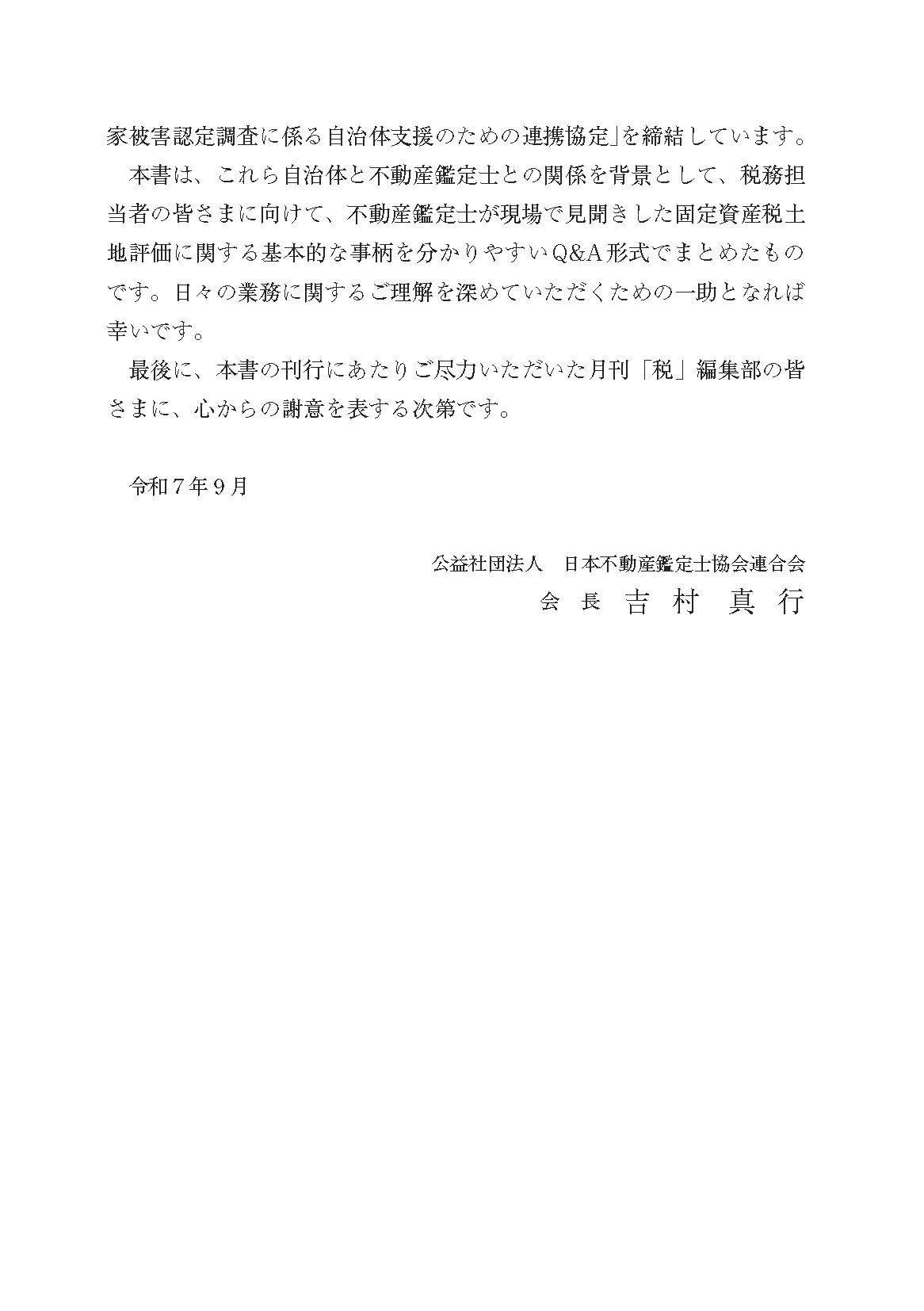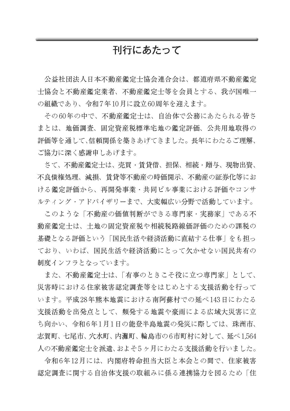 経験豊富な不動産鑑定士が解説!いちからわかる固定資産税土地評価Q&A 出版社:株式会社 ぎょうせい 登録情報 著者: 公益社団法人日本不動産鑑定士協会連合会60周年記念プロジェクトチーム/編 出版社: 株式会社 ぎょうせい ISBN: 978-4-324-11575-6 発刊日: 2025-10-20 定価 ¥3,300 (税込) 1 2 3 4 5 6 7 8 9 10 11 12 13 14 15 16 17 18 19 20 21 22 23 24 25 26 27 28 29 30 31 32 33 34 35 36 37 38 39 40 42 43 44 45 46 47 48 49 50 51 52 53 54 55 56 57 58 59 60 61 62 63 64 65 66 67 68 69 70 カートに入れる 商品の紹介 固定資産税土地評価の“よく聞かれる” “見落としがち” を解決!◆自治体から日々質問を受ける不動産鑑定士が固定資産税土地評価の基本的事項をQ&Aで解説。◆地目・地積、宅地の評価方法、路線価付設の仕方、画地認定、画地計算と所要の補正、宅地以外の評価など項目ごとに初任者でも理解できるようかみ砕いて解説をするとともに、不動産鑑定士目線のポイントを明示!第1章 固定資産税土地評価のキホン1 固定資産税制度の概要2 土地の評価の仕方3 「適正な時価」とは4 固定資産税評価と鑑定評価の違い5 固定資産税評価と相続税評価の違い6 評価基準と評価要領の関係第2章 地目・地積7 土地の地目の認定方法8 宅地の地目認定のポイント9 雑種地の地目認定のポイント10 「農地」の地目認定のポイント11 地積の認定第3章 宅地の評価のキホン12 宅地の評価13 宅地評価のスケジュール14 用途地区と状況類似地域の区分15 標準宅地の鑑定評価16 個別的要因と宅地の評価方法との関係17 用途地区の区分に係る実務上の留意事項18 状況類似地域の区分に係る実務上の留意事項19 標準宅地鑑定評価書のポイント20 価格形成要因~街路条件~21 価格形成要因~交通・接近条件~22 価格形成要因~環境条件~23 価格形成要因~行政的条件~24 価格形成要因~画地条件~第4章 路線付設の仕方25 路線価の付設26 相続税路線価との均衡27 標準的画地とは28 正面路線の選び方第5章 画地認定29 画地認定の意義30 画地認定の方法31 旗竿地の画地認定等第6章 画地計算及び所要の補正32 画地計算法における補正率の概要33 「所要の補正」の概要及びあり方34 土砂災害防止法に関する補正35 宅地の間口・奥行距離の計測方法36 奥行価格補正率37 側方路線影響加算率・二方路線影響加算率38 不整形地補正率39 間口狭小補正率・奥行長大補正率40 がけ地補正率41 通路開設補正(無道路地の評価)第7章 宅地の評価のそのほか42 土地価格の下落修正43 特殊な土地の評価第8章 宅地以外の評価ほか44 農地・山林の評価45 雑種地の評価46 私道の評価47 縦覧と閲覧の違い48 審査申出と審査請求49 住宅用地特例の認定方法50 評価に困ったときの相談先 商品のキャンセル及び返品について ご注文が確定してからのキャンセル及び商品到着後の返品は原則不可とさせていただいております。 クーポンの利用忘れや注文の間違いには十分ご注意ください。 落丁・破損等があった場合については、各書籍の出版社までご連絡ください。 お支払い商品の・発送方法について 購入された書籍は、出版社ごとに請求書を同封して発送いたします。 異なる出版社の書籍を複数同時に購入された場合は、それぞれの出版社から別々の荷物で発送されます。 代金のお支払いは出版社ごとの請求書にてそれぞれお支払いください。