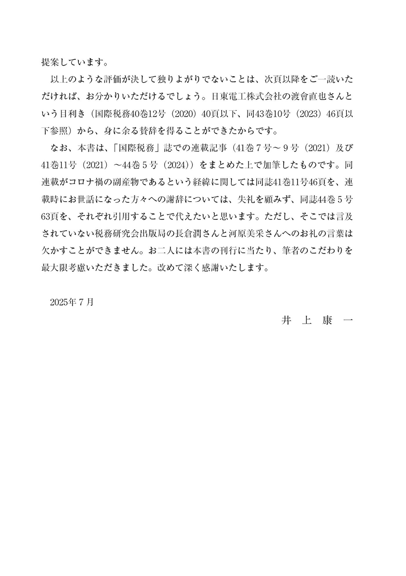移転価格税制についての素朴な疑問 出版社:株式会社 税務研究会 登録情報 著者: 井上康一 著 出版社: 株式会社 税務研究会 ISBN: 978-4-7931-2889-9 発刊日: 2025-09-30 定価 ¥6,050 (税込) 1 2 3 4 5 6 7 8 9 10 11 12 13 14 15 16 17 18 19 20 21 22 23 24 25 26 27 28 29 30 31 32 33 34 35 36 37 38 39 40 42 43 44 45 46 47 48 49 50 51 52 53 54 55 56 57 58 59 60 61 62 63 64 65 66 67 68 69 70 カートに入れる 商品の紹介 ●移転価格税制の主要な論点について、国税庁がいかなる見解をとっているかを特定した上で、その根拠がどこにあるかを示すことを心掛けています。さらに豊富な脚注を付すことにより、移転価格税制の分野において軽視されがちであった根拠の明示や文献の引用を充実させました。●移転価格税制全般を幅広く取り扱う概説書とは異なり、筆者が特に重要と考えた論点に絞った上で踏み込んだ検討をしています。それ以外の論点についても、誤解を招きやすいところや分かりにくい部分を中心に、具体例を交えながら詳細な叙述を行っています。●移転価格対応の理想像を語るのではなく、リソースの制約がある多くの日系多国籍企業にとっての現実的で効果的な対応策を提示するよう配意しています。タックスロイヤーや企業の移転価格対応の担当者などの方の、移転価格税制に対する理解を深めるために是非お役立てください。 商品のキャンセル及び返品について ご注文が確定してからのキャンセル及び商品到着後の返品は原則不可とさせていただいております。 クーポンの利用忘れや注文の間違いには十分ご注意ください。 落丁・破損等があった場合については、各書籍の出版社までご連絡ください。 お支払い商品の・発送方法について 購入された書籍は、出版社ごとに請求書を同封して発送いたします。 異なる出版社の書籍を複数同時に購入された場合は、それぞれの出版社から別々の荷物で発送されます。 代金のお支払いは出版社ごとの請求書にてそれぞれお支払いください。
