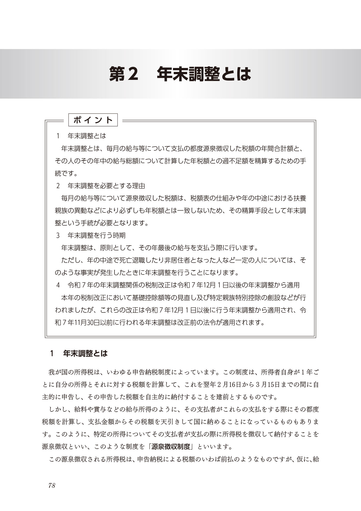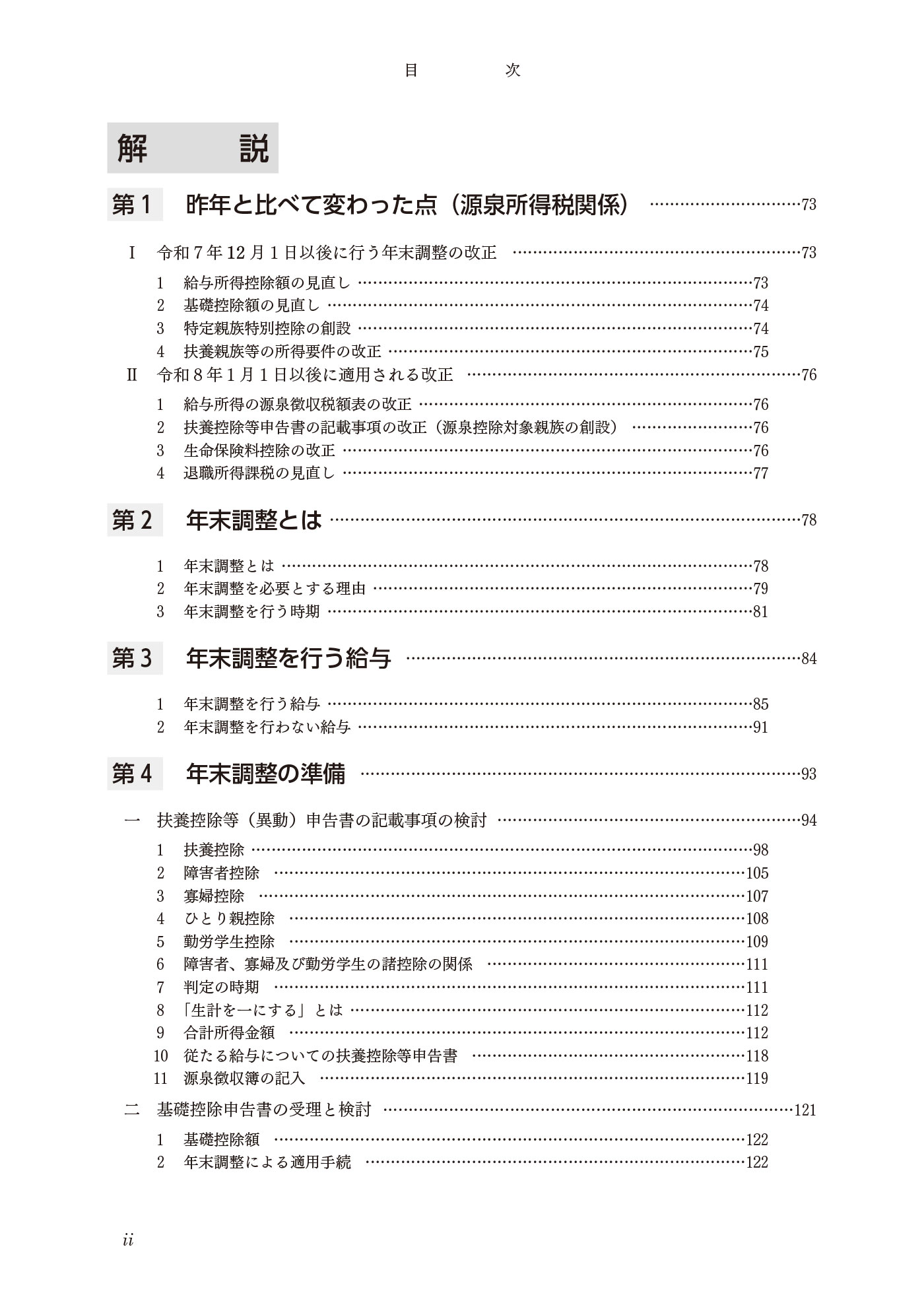 令和7年版 わかりやすい年末調整の手引 出版社:株式会社 税務研究会 登録情報 著者: 杉尾充茂 著 出版社: 株式会社 税務研究会 ISBN: 978-4-7931-2904-9 発刊日: 2025-10-30 定価 ¥2,200 (税込) 1 2 3 4 5 6 7 8 9 10 11 12 13 14 15 16 17 18 19 20 21 22 23 24 25 26 27 28 29 30 31 32 33 34 35 36 37 38 39 40 42 43 44 45 46 47 48 49 50 51 52 53 54 55 56 57 58 59 60 61 62 63 64 65 66 67 68 69 70 カートに入れる 商品の紹介 ●令和7年分の年末調整について、正しい処理方法や源泉徴収事務のポイントをわかりやすく解説した、例年好評の最新版です。●実務の流れに沿って設例や様式の記載例を織り込みながら解説していますので、はじめての方にも理解しやすい内容になっています。●今版では令和7年分の年末調整で適用される基礎控除等の改正事項について解説を加筆修正しています。●実務に欠かせない各種税額表や、「年末調整の事務手順図」、「諸控除額一覧表」、「配偶者控除額及び配偶者特別控除額の早見表」、「扶養控除額及び障害者等の控除額の合計額の早見表」及びその適用区分の図解、「所得者の態様別人的所得控除額一覧表」、「健康保険・厚生年金保険料額表」等の諸資料も収録しています。 商品のキャンセル及び返品について ご注文が確定してからのキャンセル及び商品到着後の返品は原則不可とさせていただいております。 クーポンの利用忘れや注文の間違いには十分ご注意ください。 落丁・破損等があった場合については、各書籍の出版社までご連絡ください。 お支払い商品の・発送方法について 購入された書籍は、出版社ごとに請求書を同封して発送いたします。 異なる出版社の書籍を複数同時に購入された場合は、それぞれの出版社から別々の荷物で発送されます。 代金のお支払いは出版社ごとの請求書にてそれぞれお支払いください。
